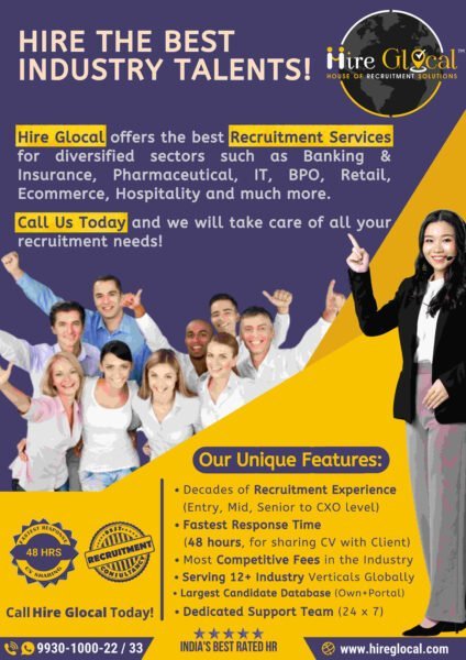 Indeed, Hire Glocal has a wide range of clients in the greatest and highest-caliber businesses and sectors, both domestically and internationally. Thanks to Hire Glocal Mumbai branch They provide amazing employment and recruitment services.