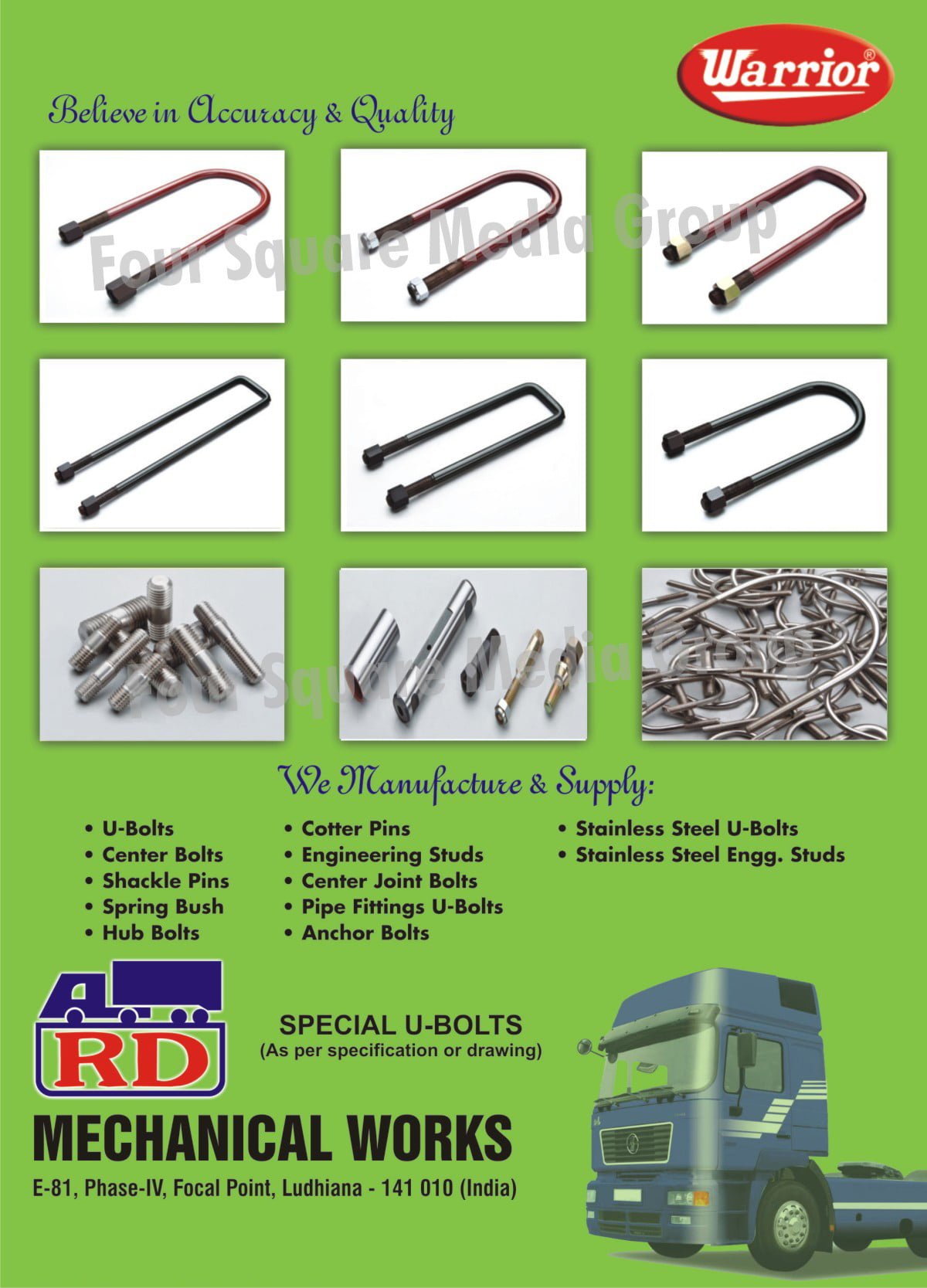 is a recognized name of Auto Electrical and Light System, U Bolts With Nuts supplier manufacturerRd Mechanical Works is assigned in Ludhiana, Panjab, India. We are a renowned company that is engaged in manufacturing a wide range variety of Auto Electrical and Light System & other products. Rd Mechanical proceeds with Involve and focused on working on the nature of our item standard according to client necessities. Rd Mechanical Believes to convey greatness in items and administrations through the nonstop improvement of a Quality and Environmental administration framework that guarantees consumer loyalty. Our organization’s objective is to cover all Domestic and worldwide market clients. To turn into a Preferred Service Provider (seller) for the assistance of Quality with Prompt conveyance and the Cost-viable Solution Provider in a Green, Clean, Safe, and Healthy Work-Culture at the office. Benefiting from our rich, wide Experience we can offer the best items and administrations to our clients in the specified time span. At the point when The excursion of the organization began way back and its steady exertion towards creating inventive machines has assisted it with building a lot of trust and trust on the lookout, Our expert group is submitted collectively, where the association is completing its business with equivalent devotion and responsibility. Rd Mechanical establishment has gotten wide acknowledgment from its client for its creative item range.