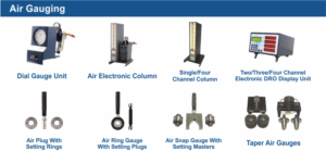 – Air plug gauge with setting ring | Air Ring Gauge with Setting Plug | Air Snap gauge with OD setting master| Air Electronic Column gauges, 4 / 8 channel digital display | Dial Type Air gauge units.